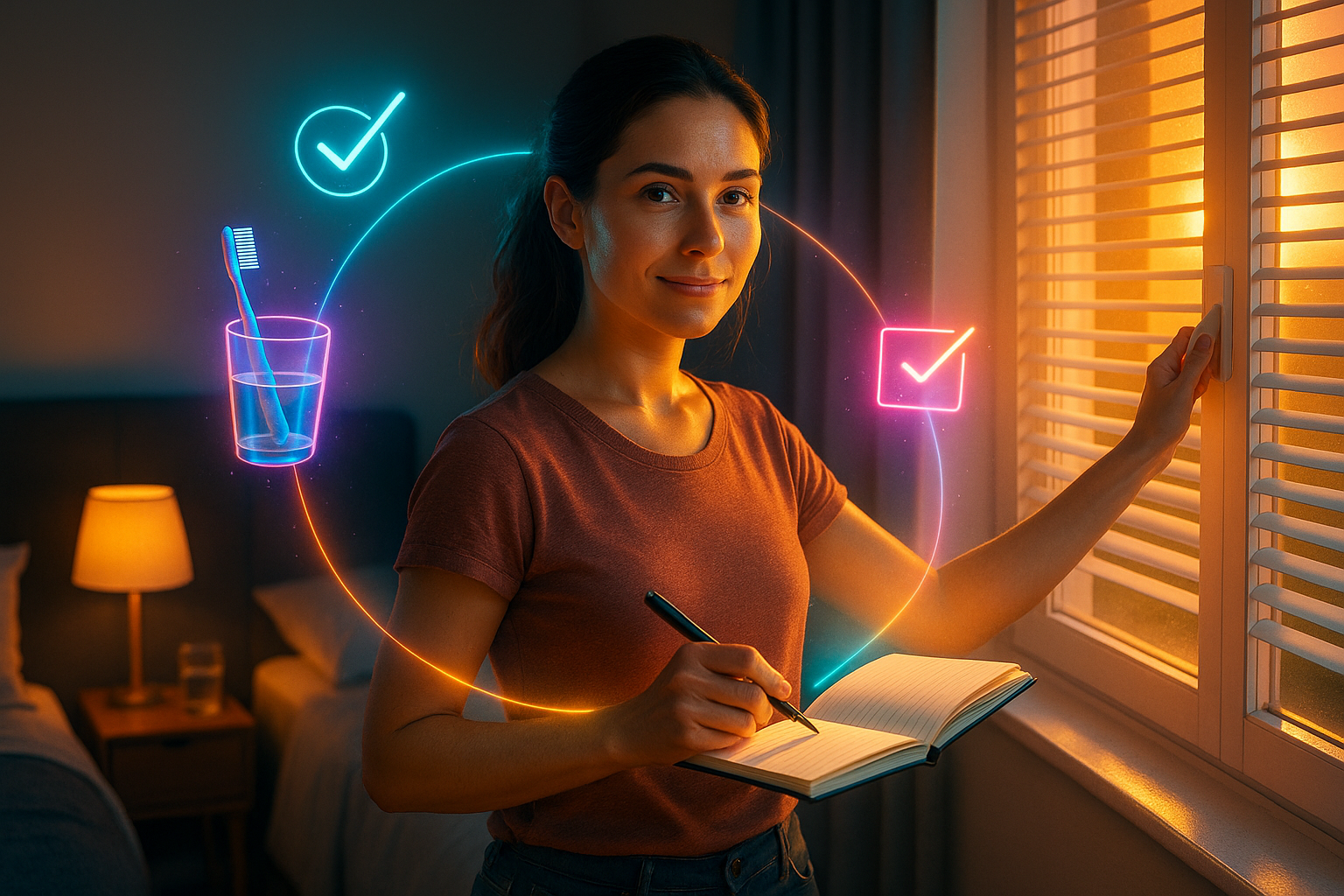 Un sommeil régulier de 7 à 8 heures stabilise votre contrôle inhibiteur, votre capacité d'attention et votre résistance aux tentations. Instaurez un couvre-feu numérique 1 heure avant le coucher. Développez une routine d'endormissement : tisane, lecture, respiration lente.